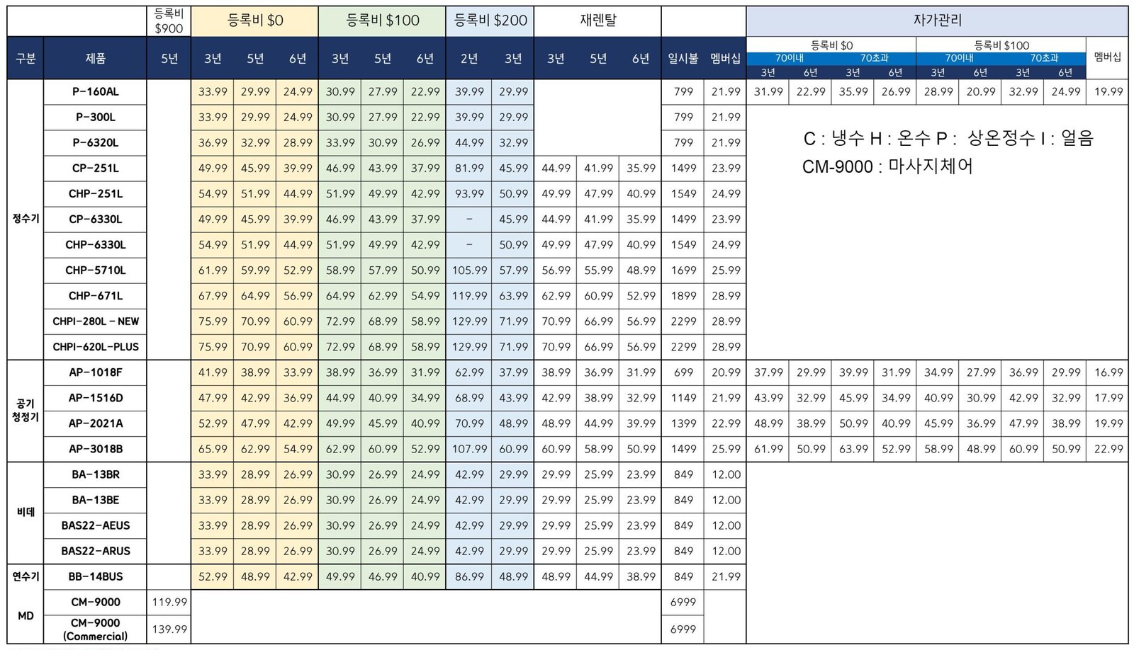 1st 주문 ($150) – 프리미엄 제품 (정수기, 공기청정기, 비데, 연수기, 안마의자) 신규렌탈 + 2nd 주문 ($150) – 프리미엄 제품 (정수기, 공기청정기, 비데, 연수기, 안마의자) 신규/재렌탈/일시불