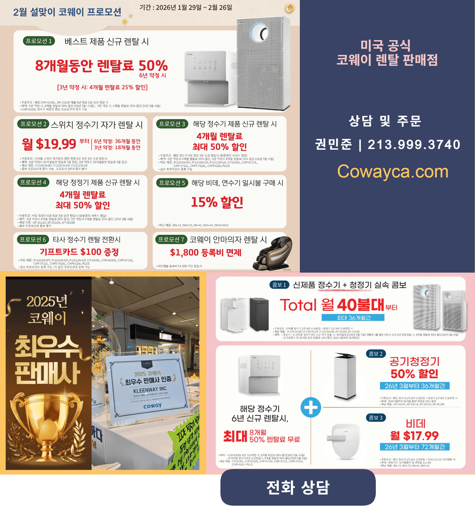 June Coway Promotion May 29, 2024 By CowayUSAsales 0 Promotion Promotion DescriptionReceive a $200 Visa CardAll Ice Water Purifier Rental or Purchasing Customer | CHPI-280L, CHPI-620L LG Wireless Vacuum Cleaner Giveaway– [Mandatory new rental of one unit + re-rental, purchase, rental of one unit] Purchase two of the mentioned products – The specified model : Water Purifier : C-6320L, CP-6330L,CHP-251L,CHP-671L, CHP-5772L CHP-5710L, CHPI-280L. CHPI-620L Air Purifier : AP-1516D, AP-2021A, AP-3018B Bidet : BA-13, BAS-22 Water Softener : BB-14 Massage Chair Waive Registration fee $900Rental Massage Chair : $119.99+tax/mo discount gift card giveaway